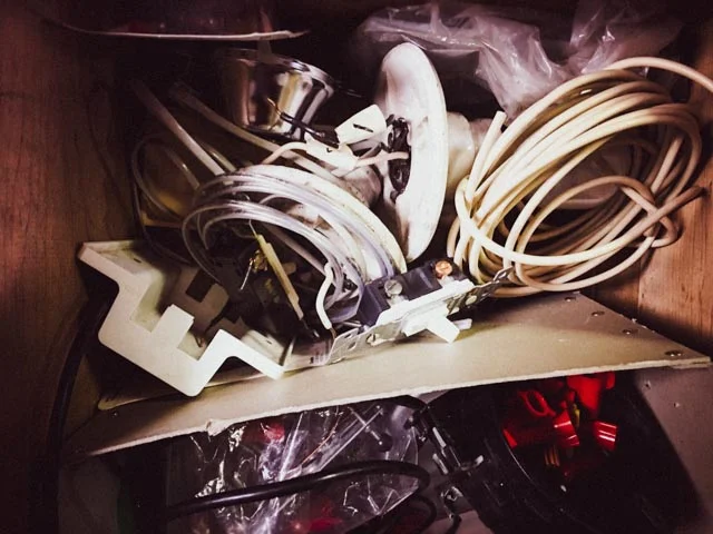 Unfortunately, one activity this house accommodates better than all others is hoarding. Not pathologically, I don’t think (some may differ). But you combine the minds of artists and engineers and the result––as a rule!––is that any item in the world of this house, any part of an item, or even any part of a part, has in its hypothetical future a brilliant hypothetical use. Or several. Or none, but you never really know, right? That’s the future for ya!